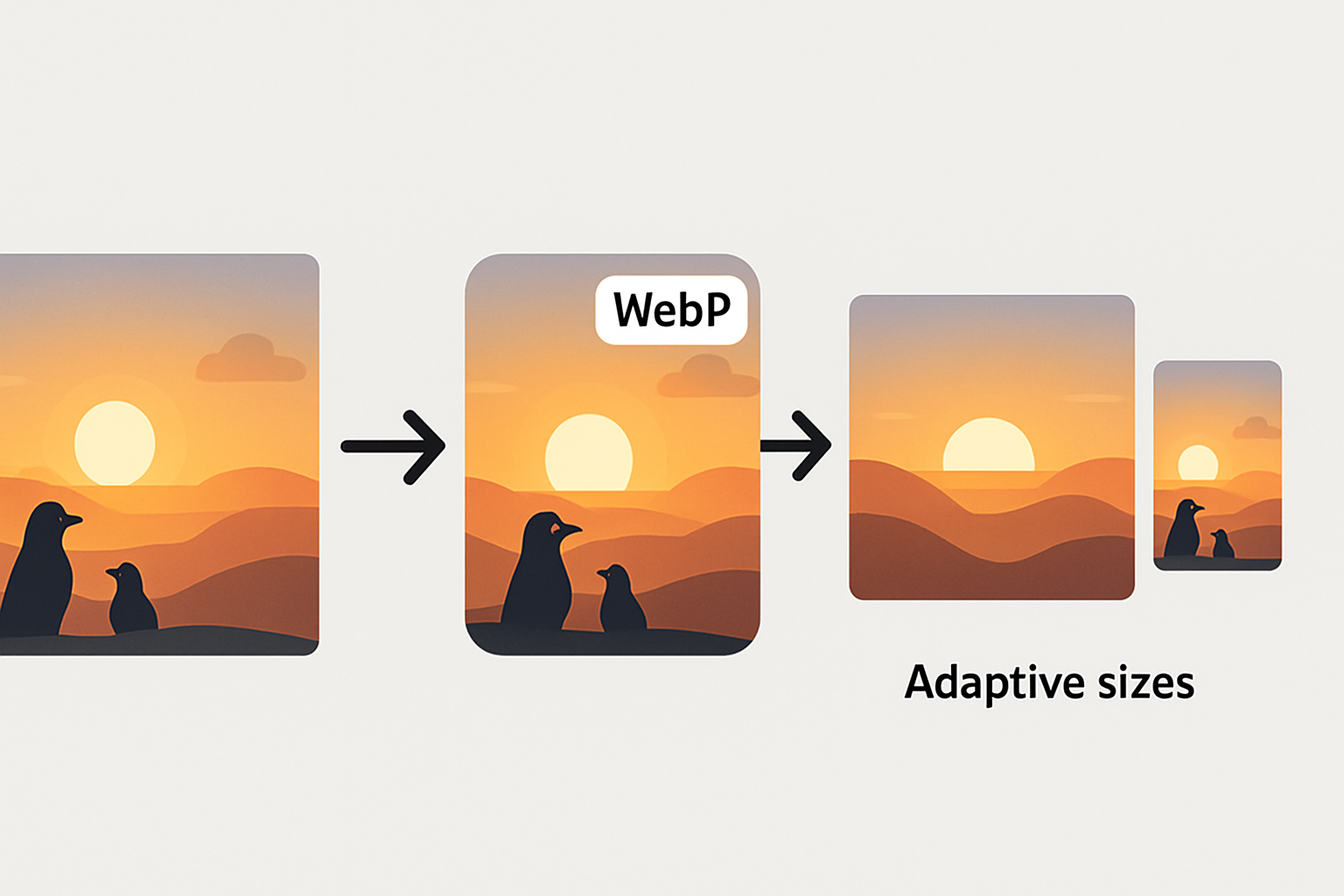 Оптимизация видео: отдавайте WebM/AV1 для экономии трафика и быстрой буферизации. Инструменты: ImageMagick, Sharp, TinyPNG, Squoosh — для конверсии, кропа и сжатия. Рекомендации по качеству: для превью и миниатюр — сильная компрессия (60–75% эквивалент), для героев — WebP/AVIF с контролем размера и responsive srcset.