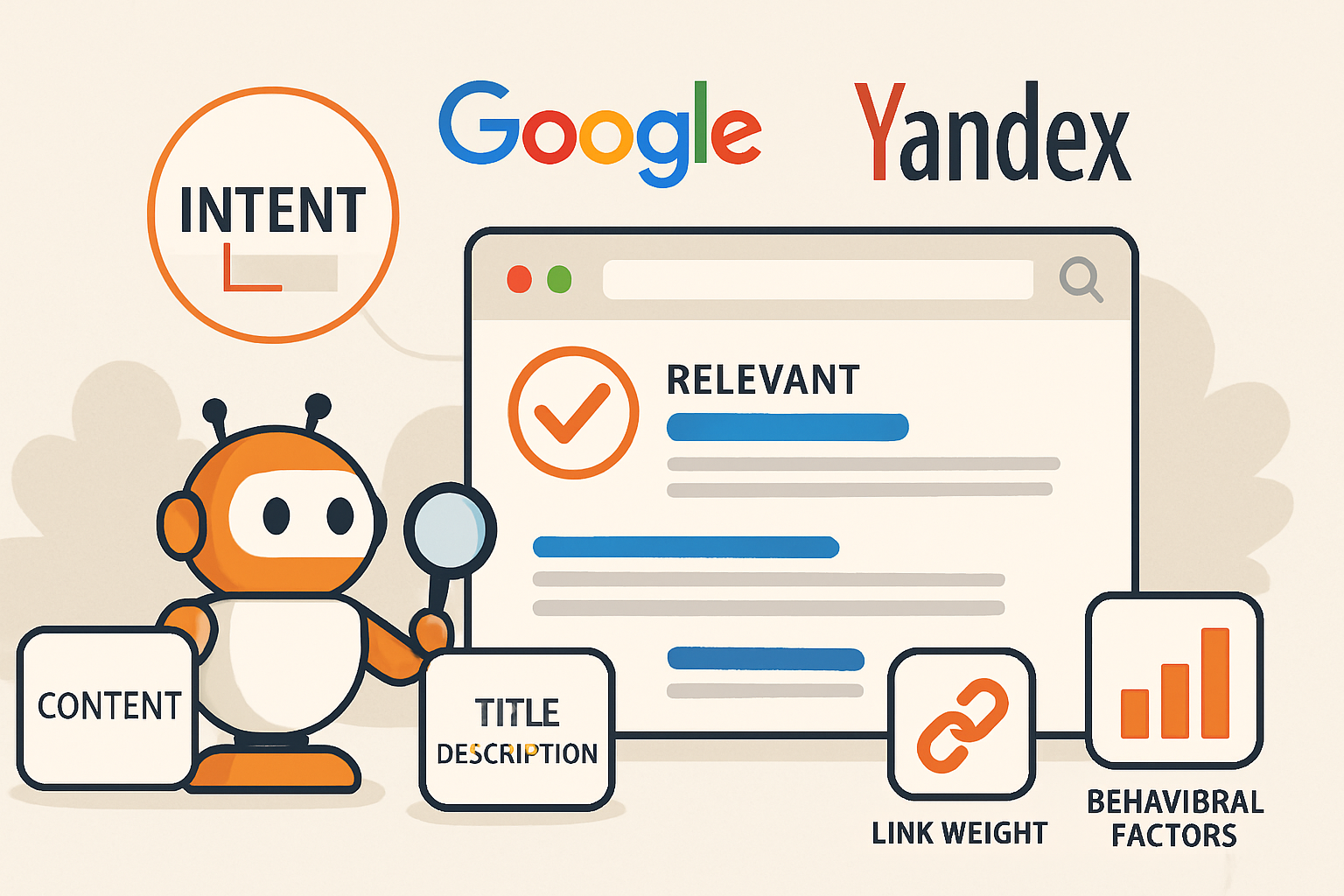 Ключевые факторы ранжирования, влияющие на выбор релевантной страницы: