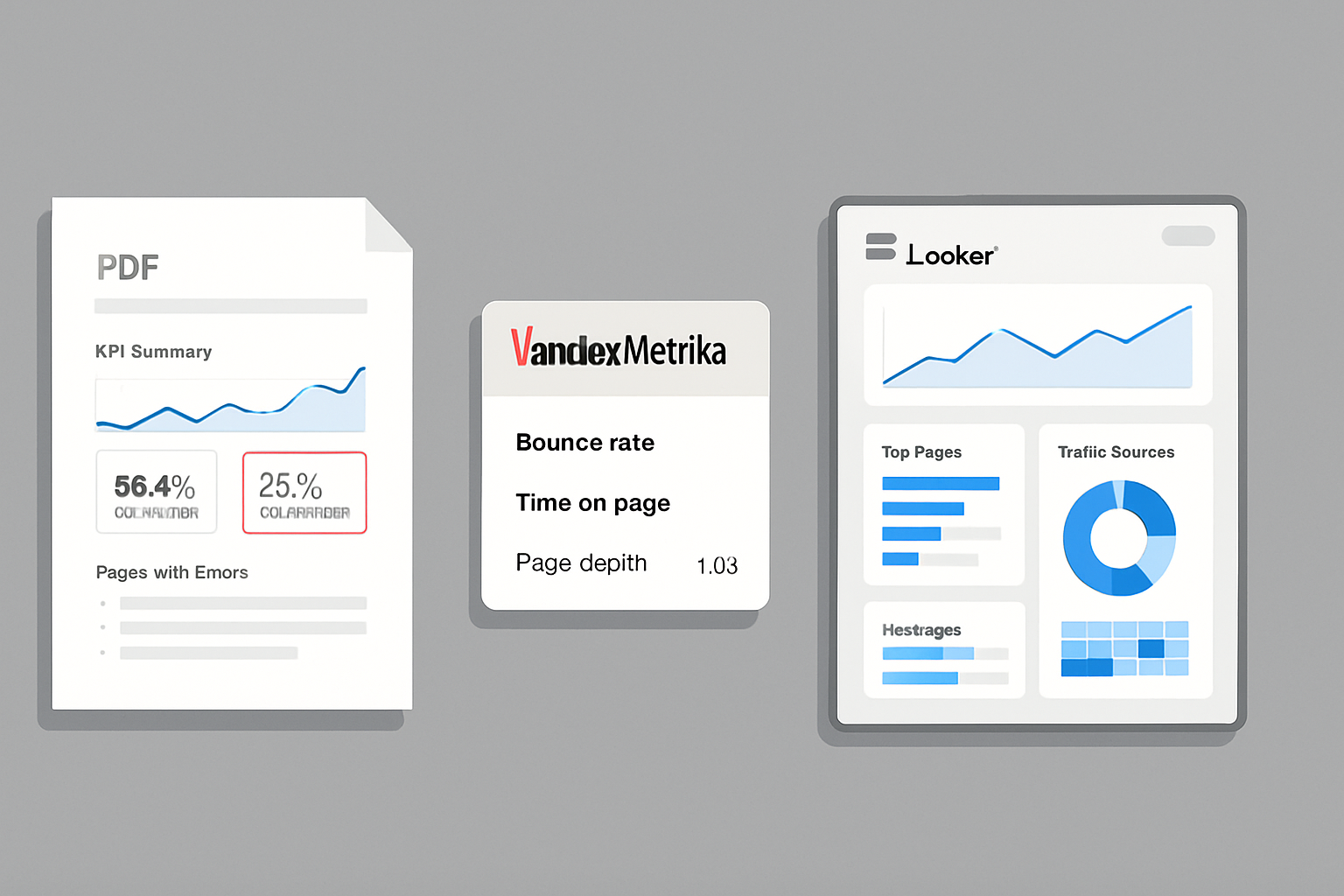 Визуальные шаблоны: PDF‑отчёт, шаблон виджета для Яндекс.Метрики и дашборд для Looker Studio